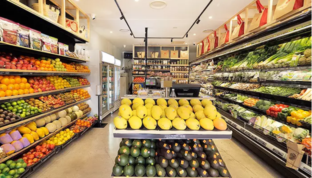 قفسه‌های مخصوص میوه و سبزیجات از اهمیت ویژه‌ای برخوردارند زیرا این بخش از فروشگاه، تأثیر زیادی بر تازگی و جذابیت ظاهری دارد. این قفسه‌ها معمولاً از جنس فلزی با رنگ الکترواستاتیک یا ترکیب فلز و چوب ساخته می‌شوند و دارای سبدها یا طبقات مشبک برای تهویه مناسب هستند. طراحی آن‌ها باید به گونه‌ای باشد که علاوه بر نمایش زیبا، به ماندگاری بیشتر محصولات کمک کند. استفاده از قفسه‌های شیب‌دار در این بخش باعث می‌شود مشتریان بتوانند به راحتی میوه‌ها و سبزیجات را مشاهده و انتخاب کنند. این نوع قفسه، علاوه بر کارایی، نقش مهمی در ارتقاء تجربه خرید مشتری دارد.
